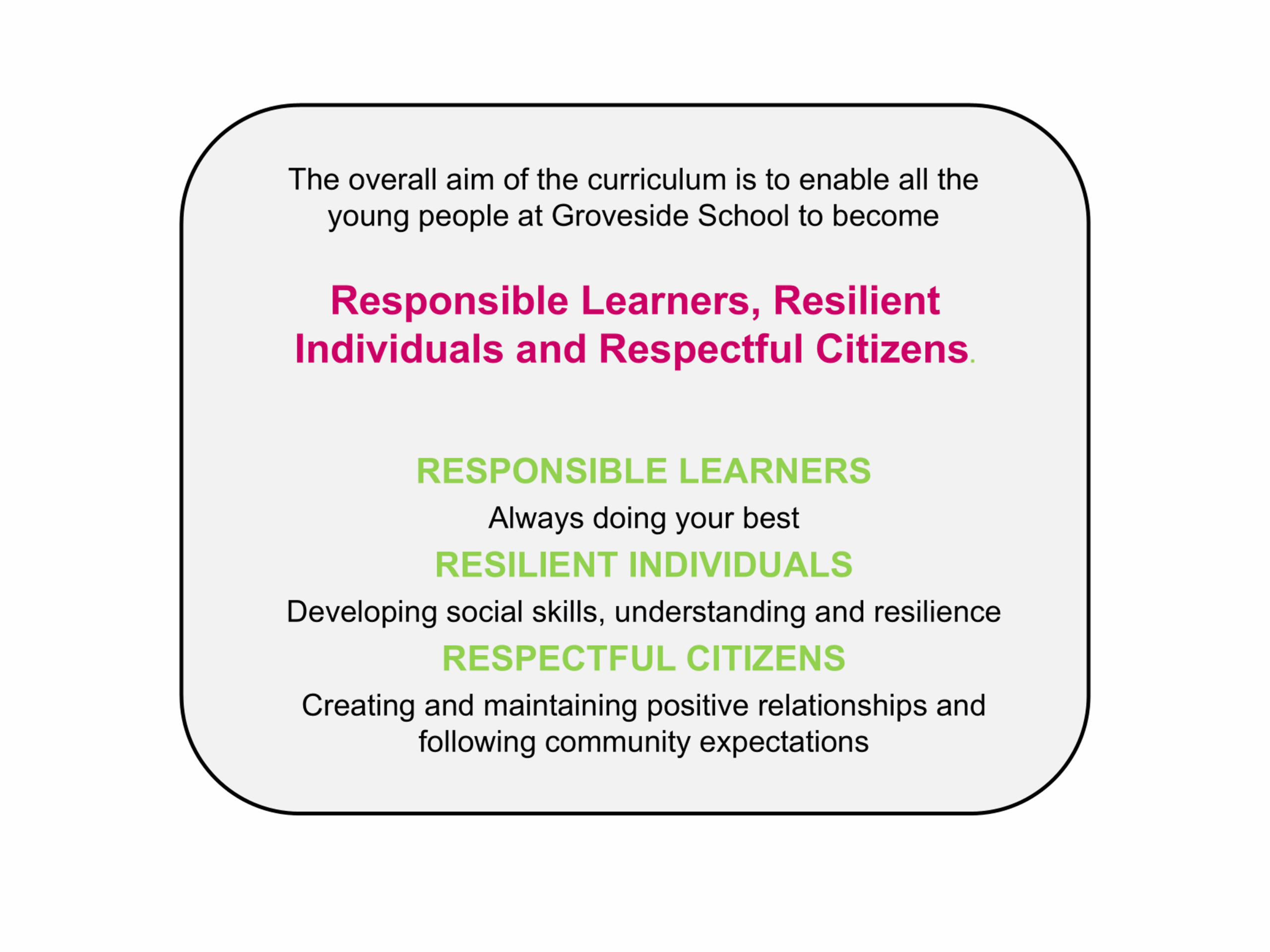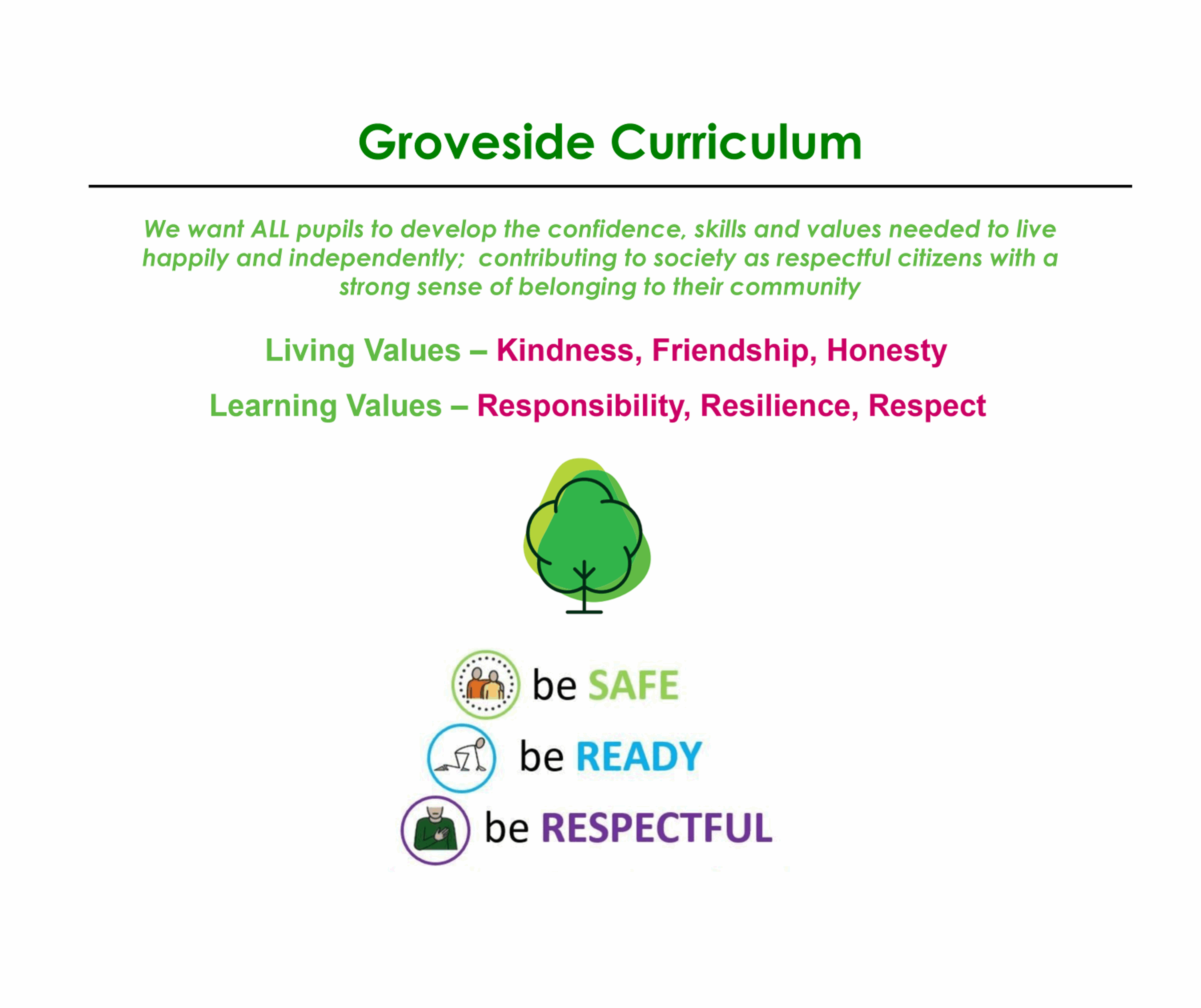 At Groveside school, we teach our pupils how to develop into positive, responsible people who can work and co-operate with others while developing their knowledge and skills, so that they can achieve their full potential.